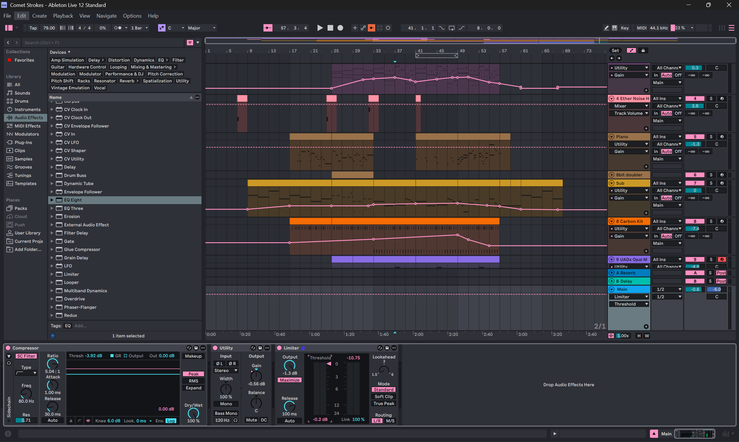 This is a special "frenzy" theme when meteor showers fall during a level, giving the player a chance to score lots of bonus points! I want this theme to have more energy and be less "hazy" then the main theme, but with a warm pad underneath to keep a more open feel. More percussive elements are used here to create additional contrast with the main theme. Originally I was framing this song around an idea of a meteor shower but honestly it felt more right to base my title and description more around comets, something that has a bit more "grace" to it because I feel like meteor showers still have a bit of an implied chaotic-ness to them that I didn't want to be part of this theme.
